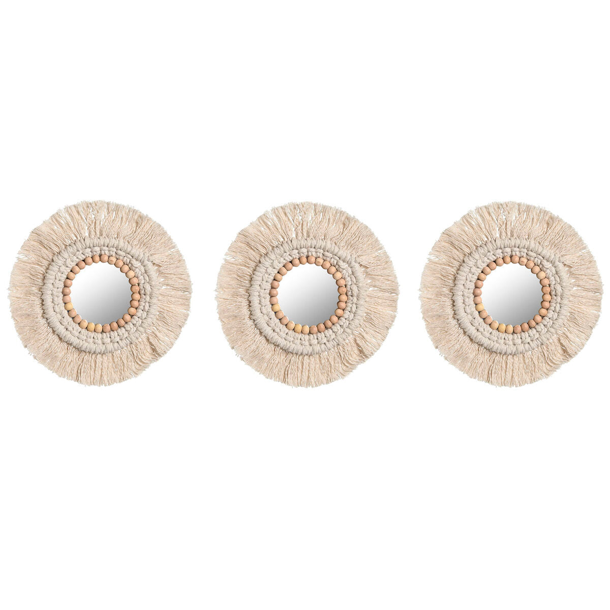 Ensemble de miroirs Home ESPRIT Blanc Boho 20 x 1 x 20 cm (3 Pièces)