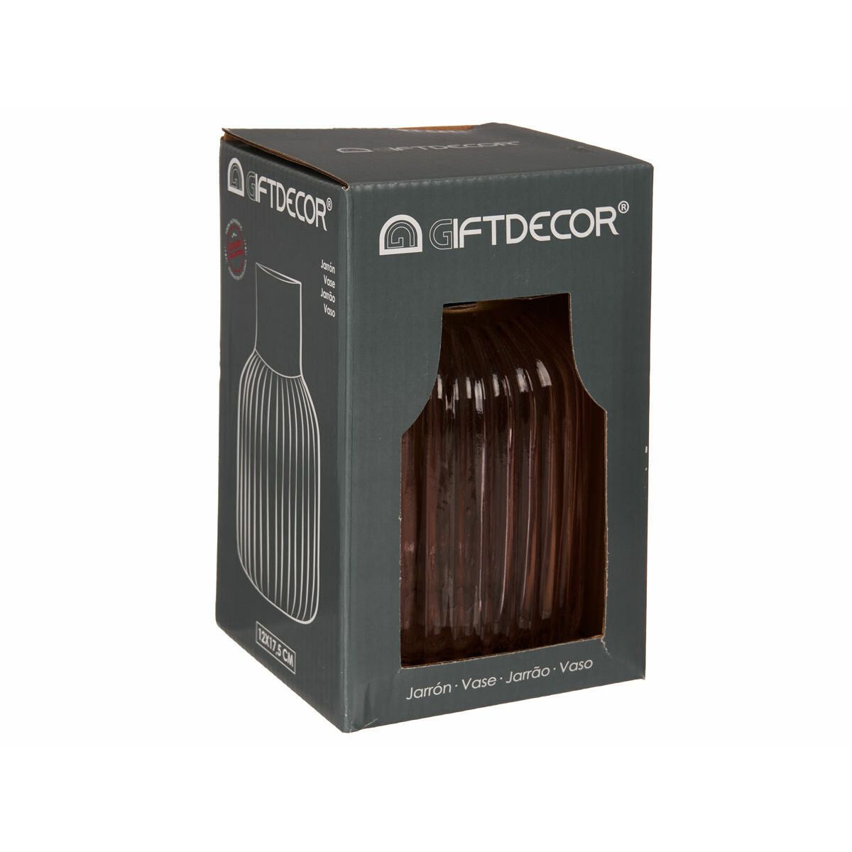 Vase Gift Decor Rose Doré verre Rayures 12 x 18 x 12 cm (6 Unités)